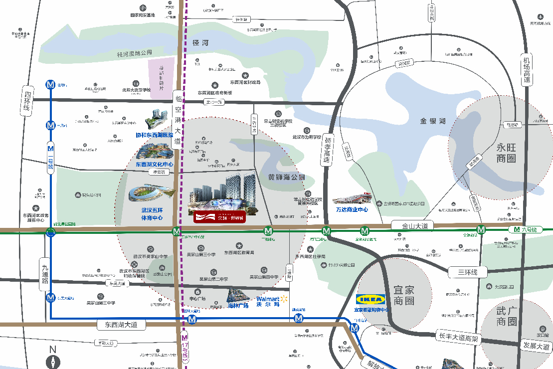 政務:東西湖新政府大樓,財政局,教育局,社保局,會議中心,人民法院,五環(huán)體育中心、東西湖文化中心